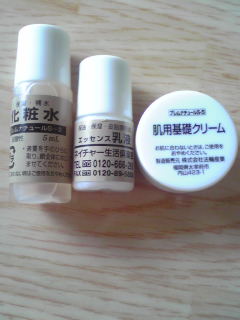 ネイチャー生活倶楽部のサンプルです。 使用したものは ・化粧水 ・乳液(エッセンス) ・肌用基礎クリーム の3点。 化粧水は保湿・保水。 薄く黄色っぽい化粧水でとろみがあります。 乳液は保油・保湿・皮脂膜形成。 エッセンス乳液とあるので、水っぽい感じ。 のびはよく、保湿もしっかりされている感じ。 基礎クリームは白いクリームで、 納豆のように糸を引くクリーム。 糸を引くのでちょっとびっくり。 3つのスキンケアをした後は、保湿されてなかなかいいです。