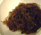 夏バテ解消法。 暑い季節は食欲がとても落ちるので、のどごしが良くて栄養価の高いものを摂るようにしています。これは沖縄の天然もずくです。茎も太くて食べ応えがあります。市販のよりも長くて歯ごたえもよいので、沖縄のもずくを買っています。少し塩分があるので水でよく洗い、おろした生姜とポン酢でいただきます。主な成分のフコダインは体に良いです。天ぷらにしてもおいしいですよ。