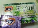 花王のバブの摘みたてハーブ日和です。 4種類の香りがあって、カモミール、ジャスミン、ラベンダー、ローズマリーです。夏場でも冷房や肩こりで疲れているときにボディケアとしてぬるめの湯船に入ってのんびりします。 いかにも入浴剤という感じでもなく、優しい香りで癒されます。