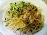 暑い時期は極端に食欲が落ちます。 冷たいものばかり食べて栄養価が偏るのも心配。 夏バテしないためにも、食べれそうなものを作って乗り切ります。 これはひやししゃぶうどん。 まず豚肉の薄切り肉をお湯で茹でて、氷水に取ります。 その後うどんを茹でたら、こちらも冷水でよく洗う。 うどんを盛ったら、そのあとお野菜とお肉を載せて、たれをかけて出来上がり。このときはサッパリポン酢系の味でしたが、ごまだれも合います。