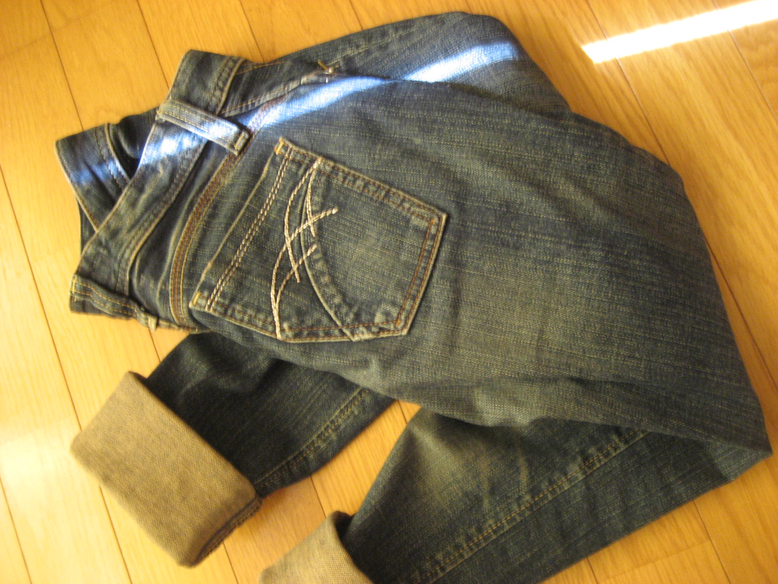 何本かあるジーンズの中でも、出番が多い一つです。 濃い目の色が引き締まって見えます。夏に買ったもので、裾を折って履いていましたが、冬でもブーツと合わせてはいたりしています。生地がやわらかくて伸縮性もあるので履いていて楽です。