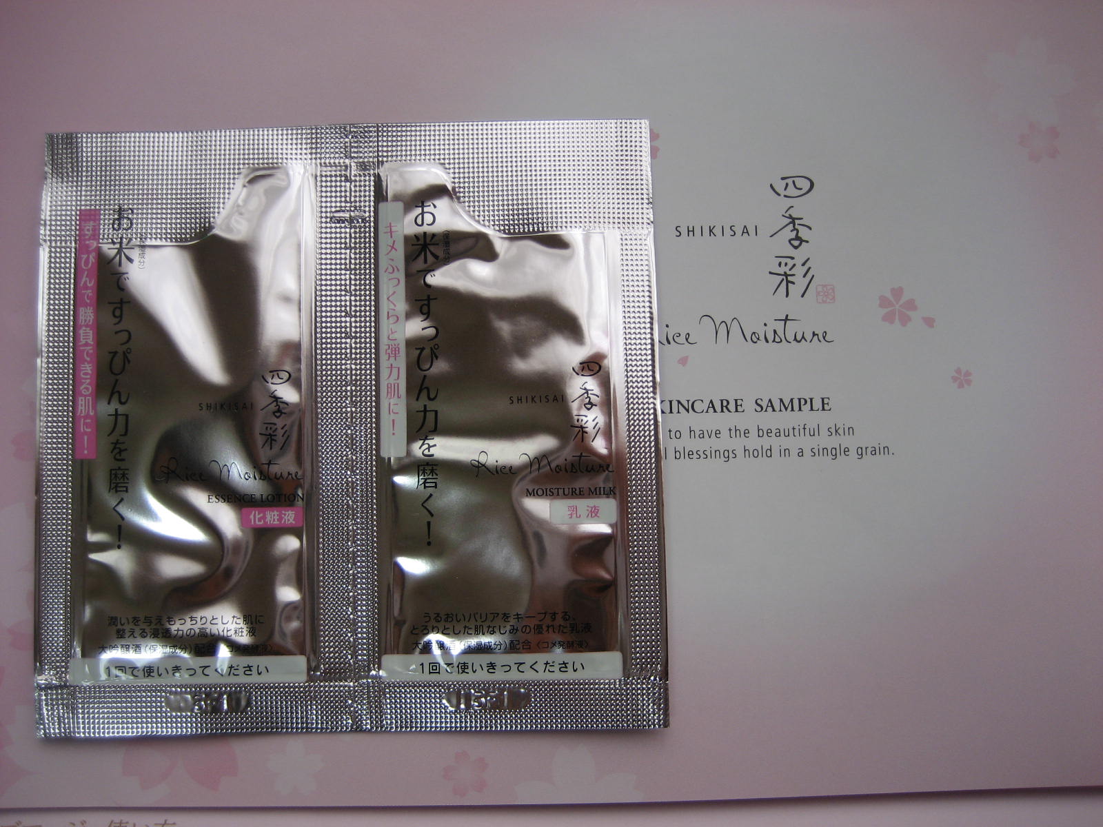 この春お勧めスキンケアアイテム。 化粧水と乳液のサンプルです。 お米で作られているそうです。麹とかも肌に良いみたいだし、お米もいいのかな? 使った感じは、化粧水も乳液もさらっとした使い心地でした。香りもほとんどなく、ナチュラルな感じ。 肌の弱い人にもよさそうだなと思いました。