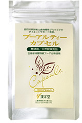こちらは、カプセルになっていて、食後にいつも2〜3粒飲んでいます。カプセルの中は、プーアルティーの粉末が入っているので、カプセルをあけて、お湯に溶かして飲んでもOKみたいですが、私はカプセルごと飲んでます。 1カプセルでプーアル茶に換算してマグカップ1杯分〜500ml分のプーアル茶成分が含まれているそうです。 飲み始めて1年以上になりますが、どんなに食べ過ぎたーーーーと なっても、3日位で元の体重に戻ります。ピークの時よりも、5キロは体重が軽くなりました。正月太りもこれで取り戻しました!