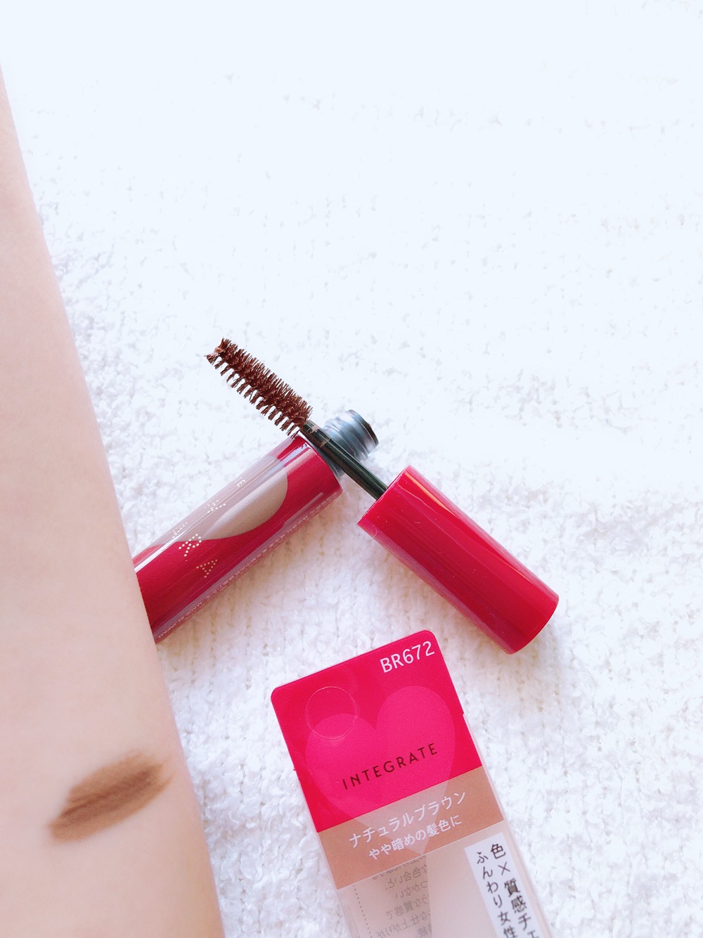 インテグレート ニュアンスアイブローマスカラ ナチュラルブラウン BR672 6g 864円 MADE IN JAPAN 私の髪の毛の色は毛先が明るいですが根元は黒いグラデーションです。 季節が夏から秋に変わったので眉毛の色も少し落ち着かせようと思い今回は、やや暗めの髪色用のナチュラルブラウンを使用しました。 普段からインテグレートの商品が好きでよく使用しています! 愛用中のインテグレートグレイシィアイブローペンシルライトブラウンでかたちを作った後に インテグレートニュアンスアイブローマス...
