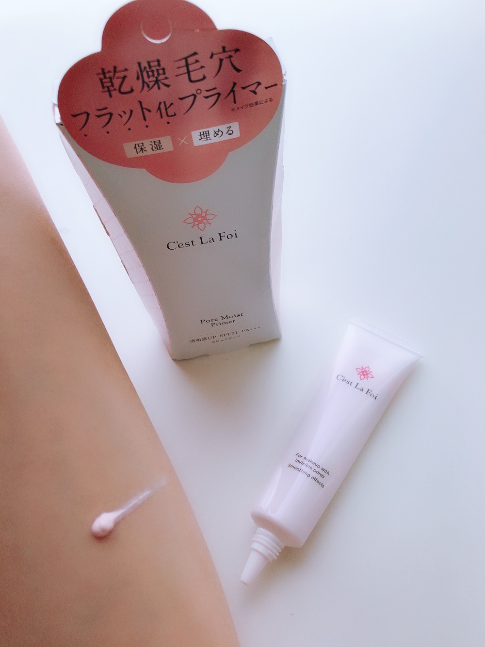 毛穴用化粧下地 セラフォア ポアモイストプライマー C'est La Foi Pore Moist Primer SPF31 PA+++ ピュアピンク 1600円 MADE IN JAPAN ムースようですが固めのテクスチャーで薄いピンク色です。 肌にのせて毛穴が気になる部分は引き上げながらくるくる埋めるように塗り込んでいきます。 私は肌が黒めで肌が結構トーンアップするので毛穴が気になるところだけに使用しています。 塗ったところは保湿されて毛穴が少し気にならなくなりました。私の肌は元から毛穴が目立っているので完全に目立たな...
