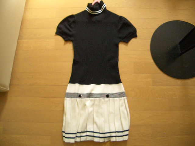 確か¥18,500位で購入しました。 上半身は黒だしフィットして細身のシルエットを演出♪ ミニのプリーツが春らしく、 袖のちょっとパフっぽい所もカワイイお気に入りの1枚です。 骨盤の高さ位に2つ付いている飾りボタンがワンポイント☆
