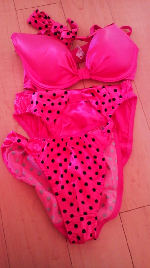 バーゲン戦利品 ブラとショーツのセット1000円〜☆ 安ーい!! ショーツは、2枚あるけど、2つとも違うデザインで、リボンみたいになっててかわいい。 ツルツルした感じで肌触りが凄く良いです!! このショーツ、1枚500円位だから、結構お得かなッッ