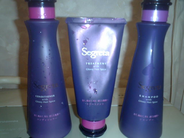 お気に入りヘアアイテム:Segreta セグレタ のシャンプー&コンディショナー&ヘアマスク 3点セットで980です。 石榴エキス、真珠エキス、薔薇エキス、王乳エキス、按葉エキス配合 当方は資生堂のツバキと一緒に使っています。 香りは甘い良い香りがします。 容器もお洒落です。 人気のあるお品なので愛用されている方は沢山いらっしゃることと思います。 価格も考えて買って損はないお品です。