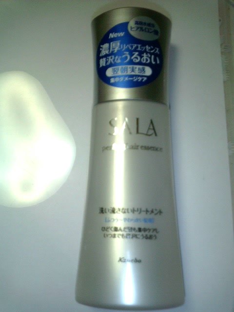 お気に入りヘアアイテム:SALA 農厚リペアエッセンス 洗い流さないトリートメント(ふつう〜やわらかい髪用) こちらはヘアマスクとセット販売されていた物でした。 価格は800前後です。 以前、レビューに書いた【LUX 洗い流さないトリートメント】より使い易いですし、使った感じもベチャベチャしてなくて良いです。(ですが、当方はあまり洗い流さないタイプのコンディショナーは使いませんので残量がかなりあります。) SALAもLUXもどちらも人気のあるお品ですが当方個人の意見としてはどうせ買うならSAL...