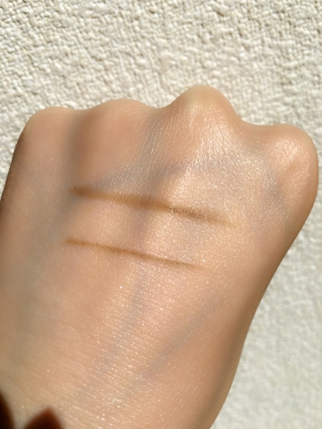 自然な茶色を使いました。茶色といっても赤みが抑えられたアッシュブラウンです。ペンシルは強弱がつけやすく、パウダーはぼかすと自然な仕上がりに。発色がよくウォータープルーフで汗でも落ちにくい。色ムラが出ず、眉だけ浮いて見えたりもしません。ペンシルは相当濃く描くこともできるので印象が違って楽しいです。コツなくささっと簡単に描けておすすめです。