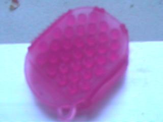 お風呂タイムのお気に入り その1 前後左右に特殊な突起の付いた、セルライトケア用のバスグッズです。 ゴムのような柔らかい毛?のような素材で、さわさわとして気持ちが良いんです。 コレで、ボディソープを付けて、気になる部分を軽く円を描くようにマッサージしながら洗います。 毛の感触が気持ち良いのと同時に気になるぼこぼこしたセルライトを上手にケアできます。 もちろん、汚れも吸着するそうで、お気に入りです。