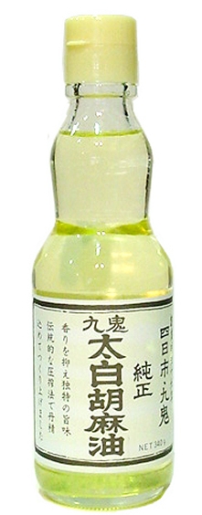 胡麻100%なのに香りも味もないので、どんなお料理にも使えるごま油です。 生搾りタイプだからごまの旨みが活きています。 太白ごま油 340g 価格 (税込588円)
