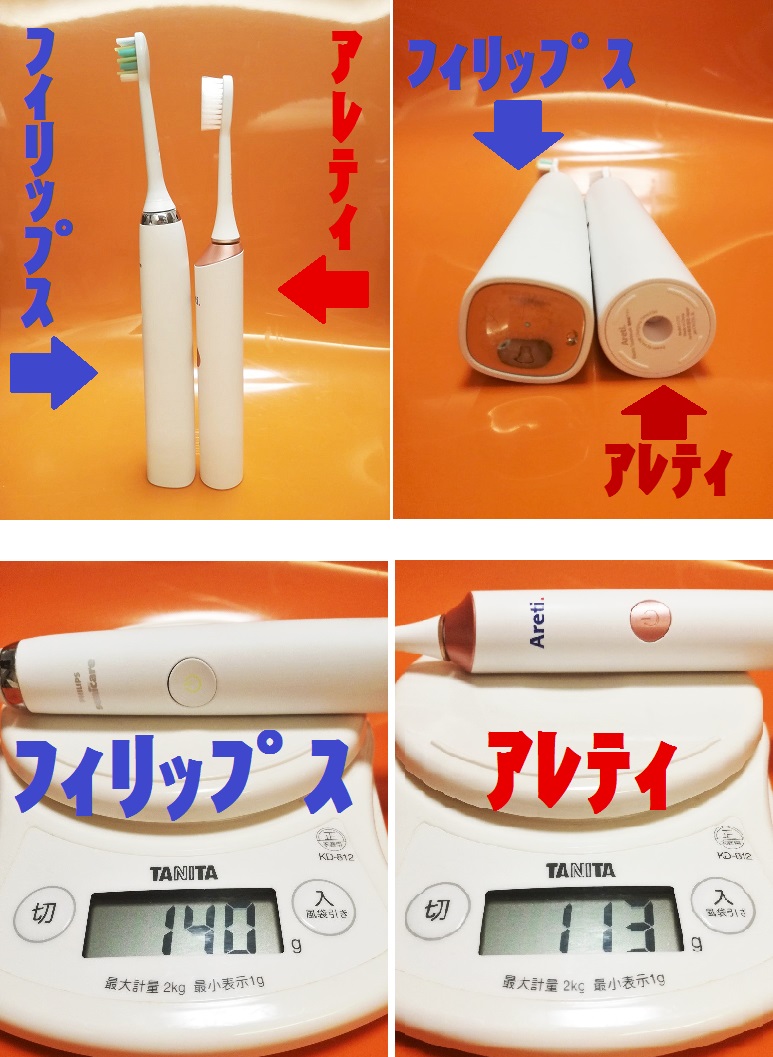 【人気のあるフィリップスと比較しました】 特長は、何といっても[1分間に約41,000回]という業界最高レベルの振動数でありながら 1万円を下回るお値段だということ。 一般的な音波振動歯ブラシは31000回程度が多いらしく。 私の家族が使っているフィリップスも31000回。 なのに、お値段は一番お安い店で買ったにもかかわらず、このアレティより7000円高い。 さらに大事なのは一回だけでは終わらないランニングコスト、替えブラシのお値段。 一番安いところでもフィリップスは1本あたり [1000円] 超えるのに対し...
