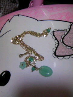 *春のファッションアイテム* 友達からの誕生日プレゼントでもらいましたv 私が緑が好きというのを覚えててくれて よく着るチャイナブラウスに合いそうだからとくれました♪ 緑なので春っぽい色でどの服でも邪魔しません^^ シンプルだけどデザインが可愛いなぁと思います☆ 本物ではないけど、翡翠っぽい色で好きです♪