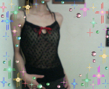 大阪ミナミの商店街で・・・ バーゲン中のお店を発見して Getしたキャミソールです♪ メッシュ素材で涼しい〜:) ★★★柄が全面に散りばめられていて〜 胸元&裾のレース&リボンがポイントになっていて〜 とってもカワイィんですヽ(*´▽`)ノ んですがっ・・・ 早速着てみたら→ 生地が薄くて下着も透けてしまうんです。。。 なのでコレを着る時には〜 ヌーブラが必須ですね...(・_・;)))