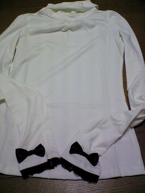秋ファッション これまた定番色の白。 ネットショッピングでは カラーを買う時に 必ず白か黒も 一緒に購入します。 カラーはモニターの関係で よく見えたりするけど 届かないとどんな色かは 解らないですしね! こちらはリボンが黒なので 派手すぎず、 コーディネイトも 考えやすいですっ! 1680円と、お財布にも 優しいですよ★