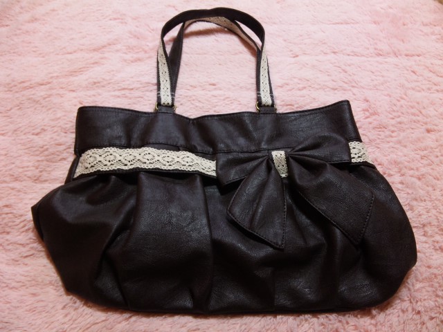 バーゲンの戦利品 A4サイズがたっぷり入るバッグが欲しくて、 探してたら見つけました。 2,000円でお手頃。 こげ茶の合成レザーで、ベージュのレースがポイント。 リボンがちょっと幼すぎるかなって思ったけど、 こげ茶なのでそうでもなくて使いやすいです。