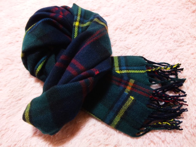 バーゲンの戦利品 見つけちゃいました、やっすいマフラー。 500円でした! グリーンのチェックが冬っぽい。 モノトーンが多くなっちゃうので、 グリーンは指し色にピッタリ♪
