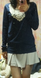 トップス...??? スカート...Spiral Girl このトップス、首回りがレースになってるので、 顔が華やかに見えます。 紺色の服って初めて買ったけどいいですね。 グレーのスカートとも相性よし。