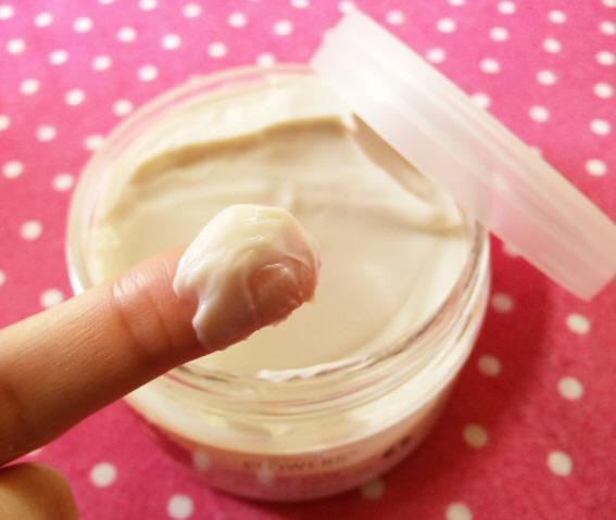 若干灰色っぽい色。 思ったよりも硬くなく使いやすいです。 もったりしたテクスチャーですが、肌にのばすとサラっ。 しっかり保湿できてるのにベタつきなし。 香りは、ローズの香りだけでなく、 ハーブの緑っぽい香りもあって凄く良い香りです。 大容量でコスパも良さそうな感じなので、リピしたいな♪