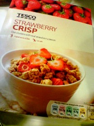 乾燥ストロベリーが入ったシリアルです。健康とダイエットのため朝食用のシリアルは色々なものを食べていますが、これはすごくお気に入りの一品。苺がたくさん入っているのとコロコロとしたオート麦の塊の食感がいいです。輸入品は日本のコーンフレークと比べ甘すぎることもなく、果物が沢山入っていて、カロリーや脂肪・塩分・糖分など表示が細かく記載されているものが多いので気に入っています。