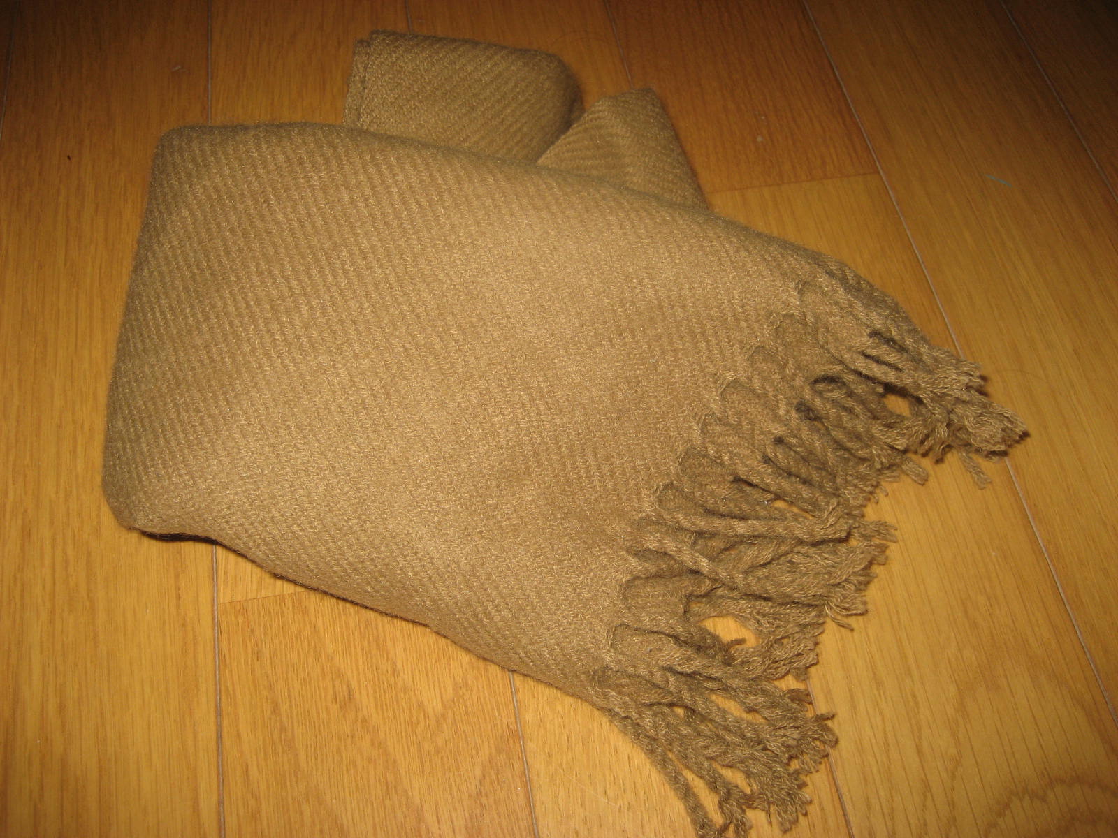 秋らしい茶系のマフラーです。 薄手でやわらかい肌触りが気に入っています。薄い色なので結構いろんな色とあわせやすいです。広げてストール風にしたりしてもいい感じです。
