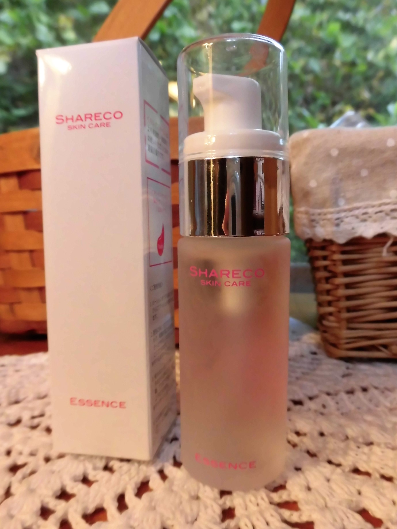 シャレコは私には初めてのブランドさんです。 この美容液、「8種類のアミノ酸、ヒアルロン酸、セラミド、コラーゲン、ローヤルゼリー、オタネニンジンエキス配合の、エイジングケアに必須な成分を贅沢に配合した『超美容液』」と自己紹介されてます。 すごくシンプルなボトルです。 プッシュ式で1滴ずつ出せるようになっているのだけど、一度につき1プッシュ分がちょうど良いみたいです。 驚いたのは使い方。 ほとんどの美容液は化粧水の後に使うと思いますが、シャレコのエッセンスは洗顔後すぐにつけるんですって。 シャレコエ...