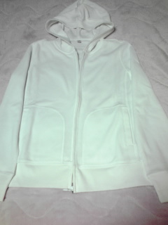 春用の薄手パーカー。 画像では見えにくいのですが、生地の表面が細かいワッフルのようになっています。 パーカーは一枚持っていると防寒対策にもなるので便利ですね。 春夏に使用したいのでホワイトを選びました♪ 薄くて軽いし流行すたりのないシンプルなデザインです。