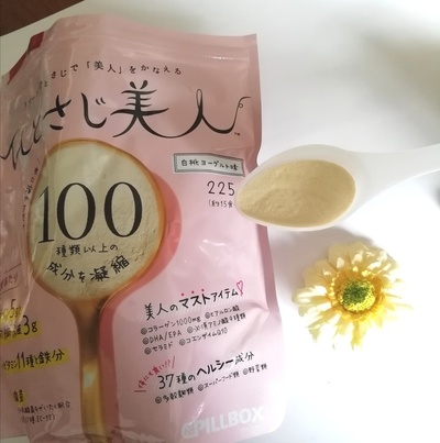 1日分のビタミンやミネラル、食物繊維、23種の乳酸菌、コラーゲン、ヒアルロン酸まで摂れる、質の高い美容サプリメントパウダー。 ピルボックスジャパンのキャンペーンに参加して、近所のドラッグストアで購入しました。 白桃ヨーグルト味と、抹茶豆乳味の2種類があり、どちらも美味しそう。で迷いましたが、私は白桃ヨーグルト味を選びました。 1日の目安量はスプーン1杯15g。 いろんな栄養素を摂るために美容ドリンクやサプリメントをいろいろ飲むことを考えると、これだけで済むのでコストパフォーマンスもいいです。 スプー...