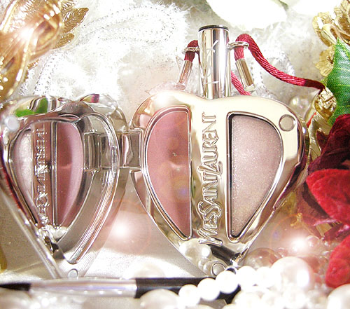 YSL にとってのラッキーチャームである ハートのジュエリーペンダントをモダンにアレンジした 可愛らしいデザインのペンダントタイプ・リップパレットです。 2007年のクリスマスコフレということで、 文句なしに即買いしちゃいました(´ω`*人) ベージュのリップカラーと、ペールピンクのリップグロスがIN。 反対側がミラーになっていて便利♪ さらに、ちゃんとリップブラシが収納されているスグレ物!! ずっしりとした重量感。ていうかちょっと重いかも? でも、気に入っちゃったのでしっかり首に下げてます。 ちな...