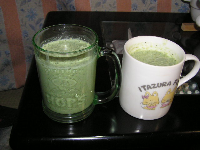 健康ドリンクはうつみみどりさんが紹介されたもので、大麦若葉、ミルク、黄な粉、黒ごま、バナナをミキサーで混ぜて毎朝飲んでいます、量は400CC位飲んでいるので、昼まで持ちます。