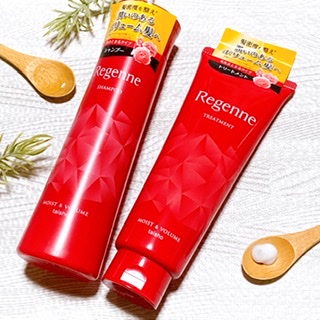 リジェンヌシャンプー モイスト&ボリュームは 潤いとまとまりのあるボリューム髪へ導いてくれ リジェンヌトリートメント モイスト&ボリュームは 髪を修復してしなやかでハリ・コシのあるさらさら髪へ導いてくれます♪ シャンプーは、キメ細かい泡が立ち頭皮まですっきり洗え トリートメントは、髪に馴染ませやすく使い心地が良いですね♪ 髪がふんわりとしてスタイリングがしやすくなり助かっています。 気分華やかなフレッシュフローラルの香りで 乾かす際もふわっと優しく香るのも気に入っています♪
