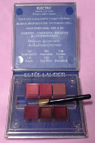 702 スウィッチ オン(Switched On) 704 アムローズ(Amourose) 708 フィクセーション(Fixation) 715 フェイタル(Fatale) 729 ライブ ワイヤー(Live Wire) 737 エレクトリファイド(Electrified) 何かのオマケ? デパートで戴いたサンプル? 家にありました。 色は下段の暗い色の方が好みでした。 エスティローダーの口紅は、紅茶の味がするので好きです。 でも落ちやすい。