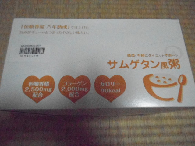 1箱7食分入り 3172円(税込) スローフードの代表的な押麦入のサムゲタン風のお粥です。 生姜の香りがほのかに香って 体も温まります。 8年熟成恒順香醋使用でアミノ酸たっぷり コラーゲンもたっぷり しかも1食90kcalというローカロリー フリーズドライなので器とお湯さえあればいつでもどこでも簡単に食べられるのはいいですね。 ササミも入って食感がいいですねぇ 生姜の香りもほんのりします、恒順香醋の酸味が食欲をそそります。 この恒順香醋は国産黒酢の2倍以上の遊離アミノ酸を含むそうで...