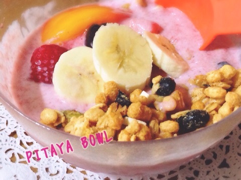 ハワイでも大ブレイク中のピタヤボウルがおうちで簡単に作れる、 というのが魅力的♪ アサイーを越える!と言われているスーパーフード 「ピタヤ」で作った新感覚の美容食です。 別名“ドラゴンフルーツ”。 太陽の恵みをたっぷり受けた“レッドピタヤ”の果肉の中には 赤いポルフェノールと呼ばれ、高い抗酸化力を有する 注目成分ベタシアニンが豊富に含有されています。 他にも、食物繊維やビタミン類(B1、B2、B6)やマグネシウム、 カリウム、葉酸など、女性にうれしい栄養素がぎっしり! ヨーグルトがあ...