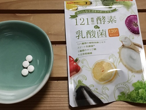 酵素と乳酸菌のサプリメントです。 年明けから何となく腸の調子が良くなかった私…。 こちらを思い出して毎日飲もうと思い、まずは1日目。 翌日、お腹を壊すことなく過ごせました。 数日飲み続けて、快調(腸)になってきた実感が!! 1日4粒、小粒なので飲みやすいし、ほんのり甘いのも好み。 121種類もの酵素と、スマート乳酸菌。 最強の組み合わせかも! なぜなら、酵素は代謝をよくする働きがあるし、乳酸菌は腸内環境を整える働きがあるから。 ダイエッターにもおススメです!