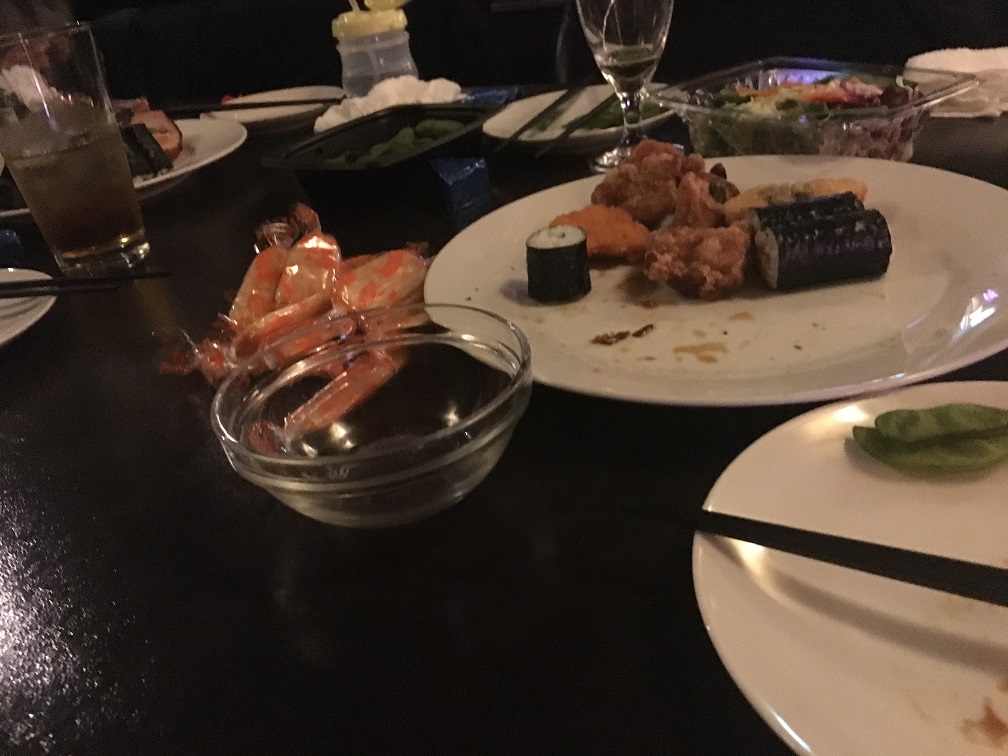家族での年末イベント、忘年会! お寿司屋さんです。 隣のカップルはモリモリ召し上がっておられましたが、うちは少食なほうらしく、食べるよりも喋って1時間くらいで終わりました。 第2弾、第3弾もある予感♪