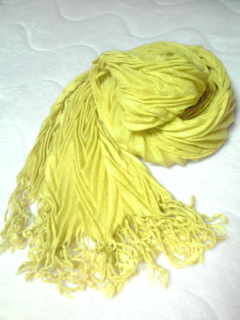 冬のバーゲン戦利品! デパートの初売りで40%OFFでGETしました。 全体的にくしゅくしゅしたデザインで、フリンジ部分も微妙に縮れている可愛いストールw ロングなので巻き方が色々とアレンジできるところが気に入って購入しました。 鮮やかな色は、冬のダークトーンに偏りがちなお洋服の差し色になって素敵ですね!!