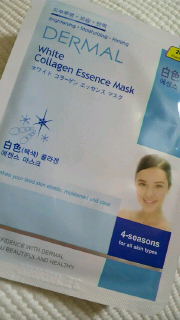 DERMALのホワイト エッセンス マスクです。 内容量は23g。 シートはある程度厚みがあるので袋から取り出すと美容液が残りません。 アルブチンとソウハクヒエキスが入っているので美白ケアに♪ ピリピリもなくもちっと潤いましたぁー