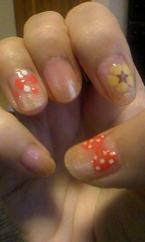 最近、ネイルサロンに行けてないので、 自分で頑張ってます。 爪の先は、ゴールドのグラデーションで、 あとは、花とリボンのシールでポイントにしてます♪ シンプルだけど、かわいらしいネイルだと 思ってます。