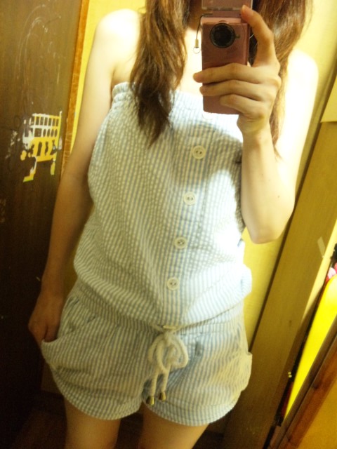 土曜日なのにどこにも出かけずw 家でゴロゴ〜ロしてました。 ので、コーデというかルームウェア。 SHAKE SHAKEのセールで購入したロンパース。 確か1500円くらい♪ 楽チンなんです(*^ω^*) ブルーのストライプが爽やか。 けど、最近涼しいから、 そろそろ衣替えかなー。