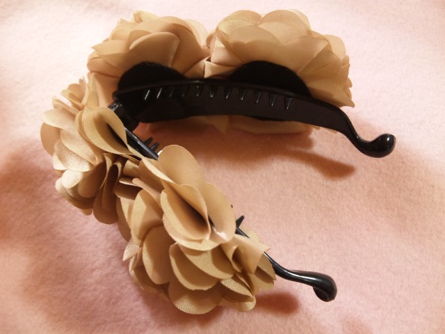 秋のファッションアイテム ベージュの花がたっぷりついたバナナクリップ。 髪を挟むだけなんだけど、意外としっかり固定できるんだよね。 髪に跡が付きにくいところがいい。 もういくつか集めたいです♪