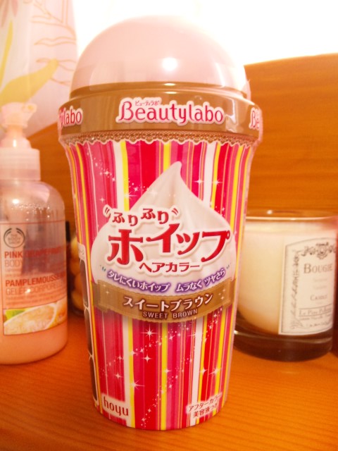 この夏大活躍したアイテム 夏は明るい髪色にしたくなるので、 ふりふりホイップヘアカラーを使ってみました。 可愛いカップに液と粉を入れてフリフリ〜。 説明書には30回程度って書いてあるけど、 100回・200回と多く振ったほうが、 垂れないモチモチの泡ができますよ。 どこから塗るとか関係なく、 バーッと泡を髪全体に揉み込むだけ。 プリンの部分もキレイに均一に染まり、 ツヤツヤの髪になりました。 スイートブラウンは赤くも黄色くもない 中間のブラウンって感じです。 お気に入りの色です♪