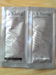 ラサーナ 海藻 海泥シャンプー・トリートメントのサンプルです。 海藻 海泥なのでしゃんぷー・トリートメントの色は灰色でした。 シャンプーはフローラル系(?)っぽい香りがしました。 泡立ちはよかったです。 洗って流した後、髪の指通りはよかったです。 トリートメントは水気を軽く切ってからなじませて 2〜3分してから洗い流す。 洗い上がりは・・・髪の毛がつるつるした感じです。 海藻 海泥の効果かな?