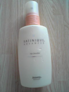 アムウェイ サテニークアドバンスト ヘアスムーサーです。 洗い流さないヘアトリートメントで これはスプレー式です。 濡れた髪にも乾いた髪にも使えるので便利です。 寝ぐせ直しに使ってました。 スプレーなので髪全体に使えるのでいいです。 でも、香りがフローラル系(?)のような感じなのですが 香りがきつすぎて個人的には香りは好きじゃありません。