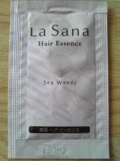 ラサーナ 海藻ヘアエッセンスのサンプルです。 洗髪後に簡単にタオルドライしてある程度自然乾燥させてから ヘアエッセンスを使用しました。 洗い流さないトリートメントでべたつきがそこまでないので 扱いはラクです。 サンプルは2mlなので、ちょっと量が少ないかな?と思いました。 髪の毛になじませて簡単にドライヤーで乾かしましたが しっとりしました。