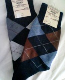 バーゲン戦利品 無印良品の靴下です。アーガイルの落ち着いた模様が入っているので何にでもあいやすく使いやすいので、色違いで購入しました。 無印の服はあまり好みではないので買いませんが、日用品や靴下などはセールだったので買いました。