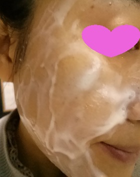 このパック、使う前にシャカシャカ振ってからプッシュすることで泡状の炭酸パック剤が出てくるんです。 しっかり振ることできめ細かい、濃い泡となって出てきます。 これを顔全体に肌が見えないくらいの厚さで伸ばすのだとか。 あまりに薄いと炭酸が飛んでしまって効果が薄らぐらしいです。 つけてみると、肌に少々刺激を感じます。これは炭酸が肌にアタックしているような感じとでもいいましょうか。 拭き取った後が少し赤みがあるのは血行促進されているのでしょうか。 このパックの良いところは、2つのものをあわせるという...
