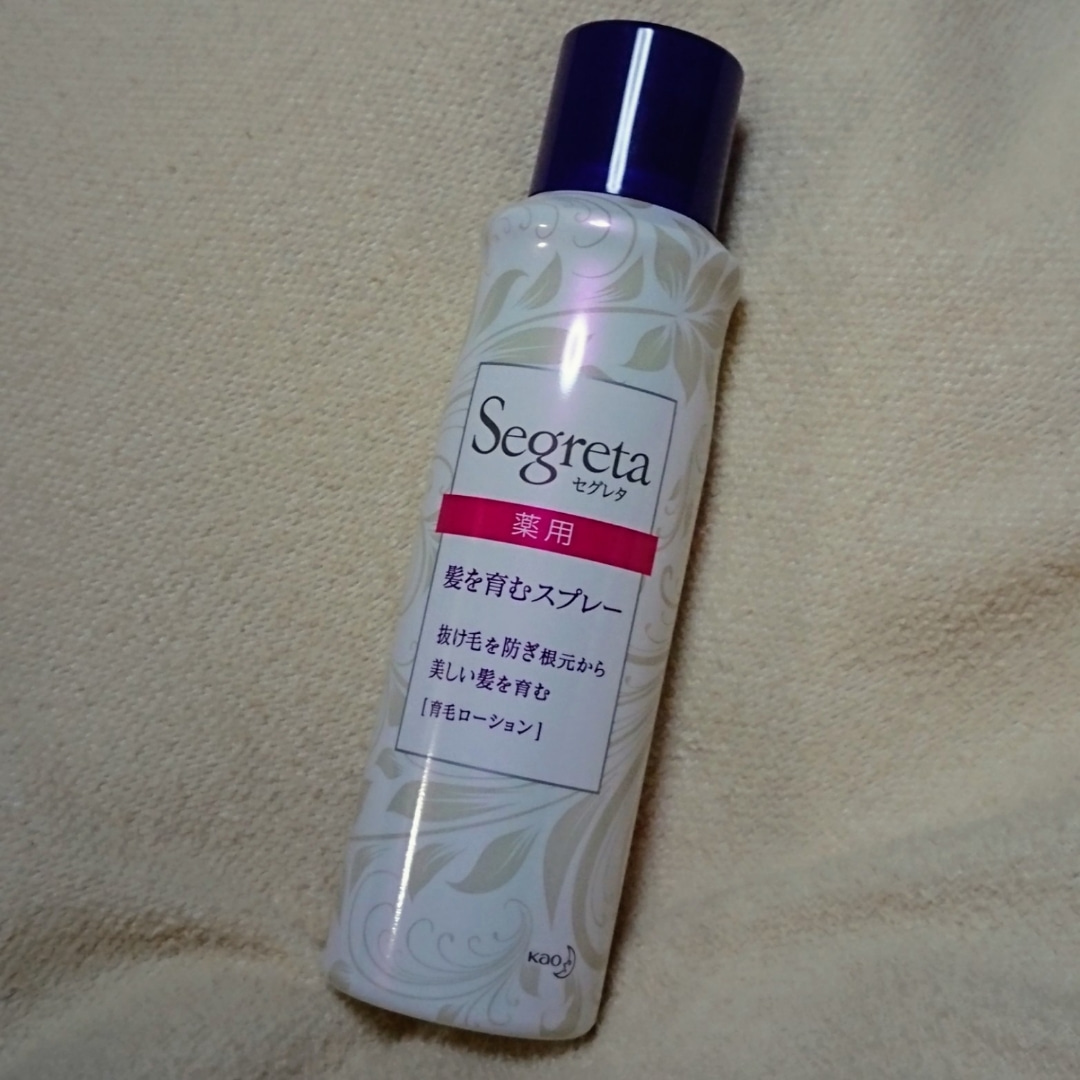 モニターとして現品を頂き、お試しをさせて頂きました。 抜け毛が気になりはじめた方におススメの 根元から太く長く美しい髪を育む「育毛ローション」をお試しさせて頂きました。 花王様の調べによると、女性の髪は、30代後半から少なくなる傾向があるそうです。 その原因の1つが、髪の成長サイクルにおける 「休止期(髪が抜けてから新しく生え始めるまで)」の長さの変化。 「セグレタ髪を育むスプレー」は、 年齢とともに乱れがちな髪の成長サイクルを改善することに着目した育毛剤。 リニューアルされ、生薬を印象付...