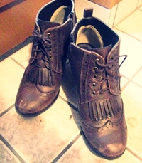 この冬のお気に入りファッションアイテムを紹介します。 ブラウンのショートブーツです。 4000円ほどで購入しました。つま先部分が少し剥げたような 加工がしてあるので、アンティークの雰囲気があり、おしゃれです。 足首少し上くらいの丈なので、タイツだけで履くと足が 細く、そしてすらりとまっすぐしたようにも見え、色物の ニーハイソックスをくしゅくしゅとさせてふくらはぎ丈に して足元にボリュームを持たせた足テクもできます。 冬は単調なファッションになりがちなので、足元で変化を 持たせるのに便利です。